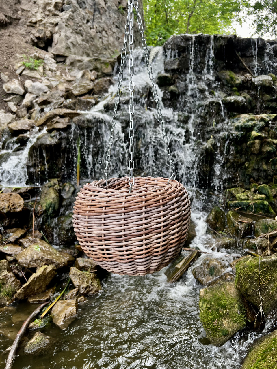 Підвісне кашпо зі штучного ротангу “Лоза 5 л” — плетений горщик ручної роботи для балкона, тераси, саду