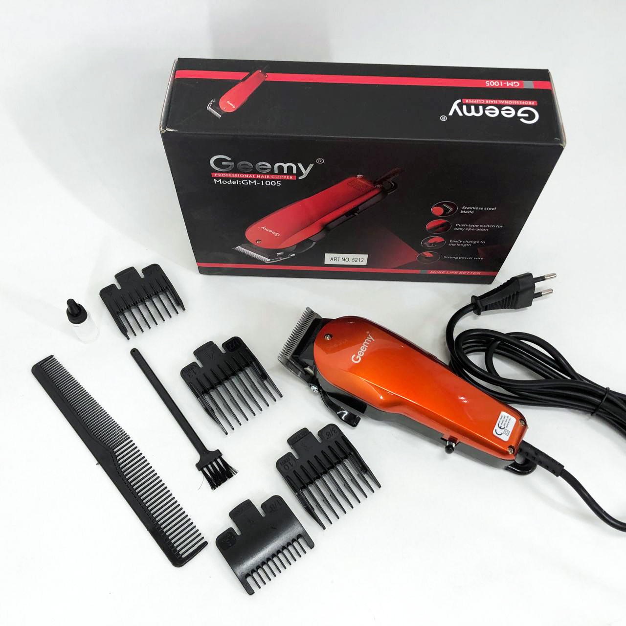 ⚡ Машинка для стрижки Gemei GM-1005 оснащена чотирма насадками, які дозволять створювати стрижки різної довжини. Цей функціональний прилад буде корисний як перукарю-професіоналу, так і тим, хто вважає за краще стригтися вдома, не звертаючись до салонів. Завдяки зручності у використанні машинка для стрижки волосся стане просто незамінною у повсякденному житті. А ваші улюблені чоловіки завжди матимуть доглянутий вигляд. Ця машинка для стрижки волосся має надійні леза із нержавіючої сталі. Корпус виглядає привабливо та зручно розміщується в руці.