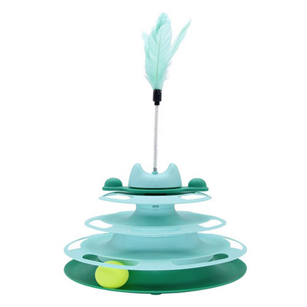 ⚡ Іграшка для кішок представлена у вигляді чотирирівневого треку. На кожному рівні можна розташувати по одному або декілька м’ячиків, залежно від переваг кішки.